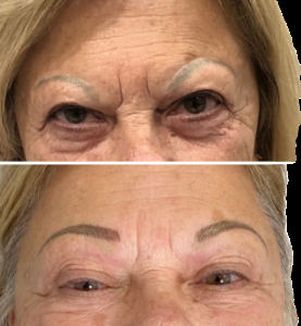 Another unforgettable client was a woman who had been searching for eyebrow tattoo removal for years. Her brows were solid black, overly arched, and had faded into what she described as “McDonald arches.” She was embarrassed and frustrated because no one in her area offered safe and effective permanent makeup removal. When she found Wake Up To Makeup, she was thrilled to learn we could not only remove her old brow tattoos but also redo them properly afterward. After her removal sessions, I used my camouflage and brow design techniques to restore her brows into a natural, flattering shape. She looked in the mirror and said, “This is life-changing for me!” Moments like that remind us why we love what we do.